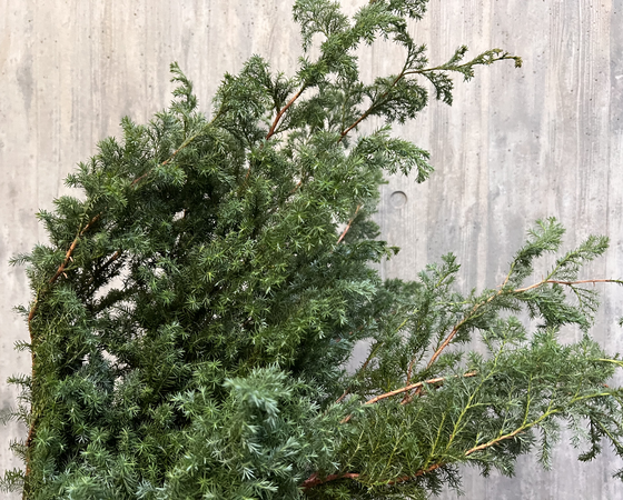 少し灰色がかった柔らかい緑色の葉が特徴的な杉で、クリスマスリースはもちろんのことアレンジメントとしても活躍します!