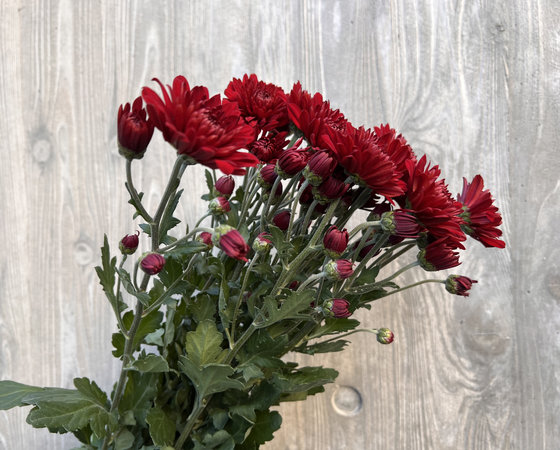 深紅の花色がシックで綺麗な品種で、スプレータイプな為ボリューム感もあります!