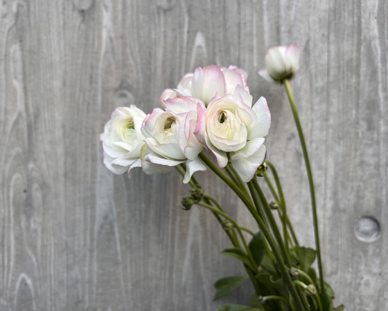 真っ白な花弁の先端にうっすらと薄いピンク色の差しが入った品種です!