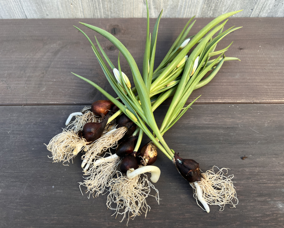 富山県は高岡市農協さんの球根付チューリップです。