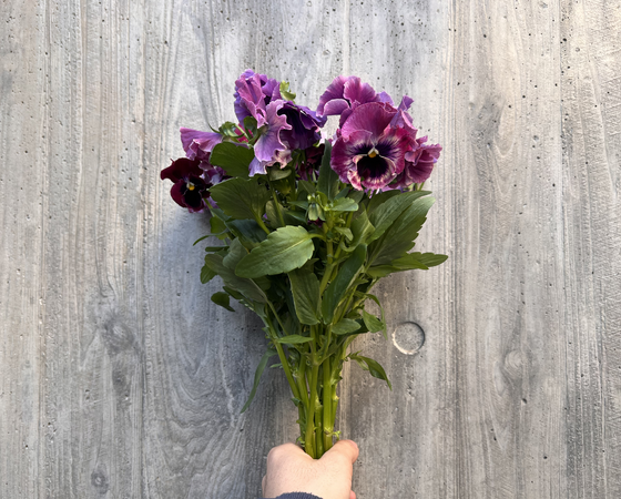 花のサイズは中輪で、花弁にフリルがかかっていてとても可愛らしくも高貴な印象のパンジーです。