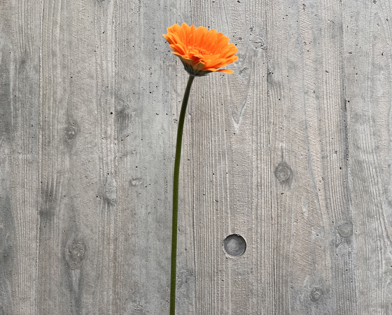 フレッシュなオレンジ色の花弁と真っ黒な芯とのコントラストが魅力的となっております。