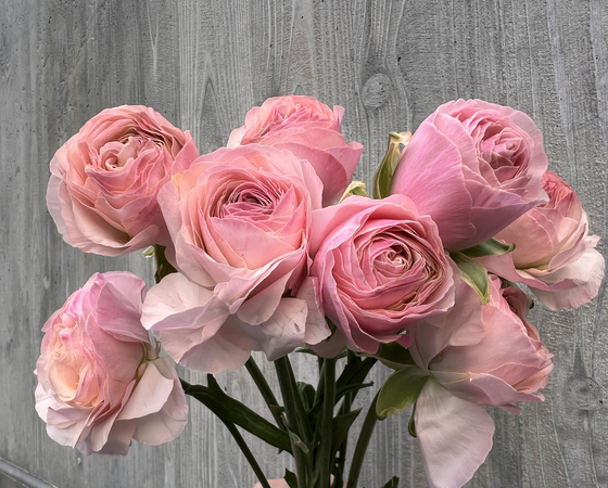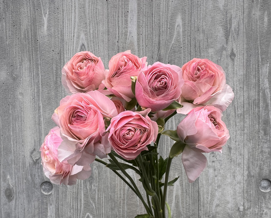 淡いピンク色の花色が特徴的なラナンキュラスで、優しくふんわりとした雰囲気です!