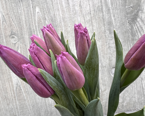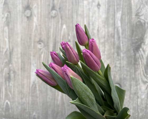花びらの縁がギザギザとしたフリンジ咲きの品種で、パープルの花色と相まってシックなチューリップとなっています。