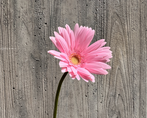 花びらの先は少し尖った形になっており、薄ピンクの花色が可愛らしくも主張のあるガーベラとなっております。