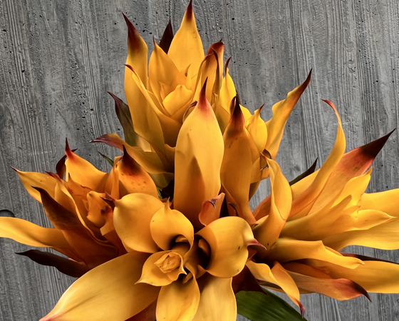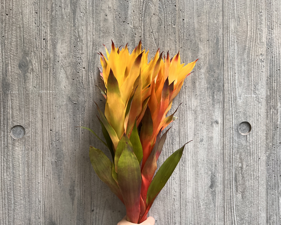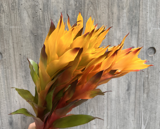 鮮やかな黄色とオレンジのグラデーションが美しく、トロピカルな感じの花となっております。