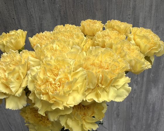 一輪タイプのカーネーションで、花色は少しオレンジっぽい優しい黄色となっております。