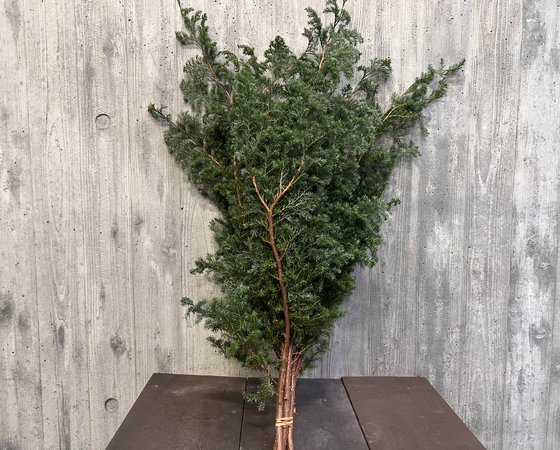少し灰色がかった柔らかい緑色の葉が特徴的な杉で、クリスマスリースはもちろんのことアレンジメントとしても活躍します!