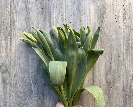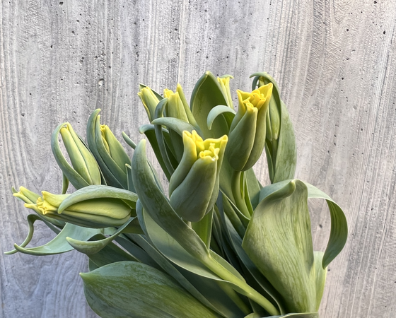 まだ蕾の状態ですが、開花が進むと王冠のように咲くクラウン咲きの品種で、黄色の花色と相まってとても豪華な印象です。