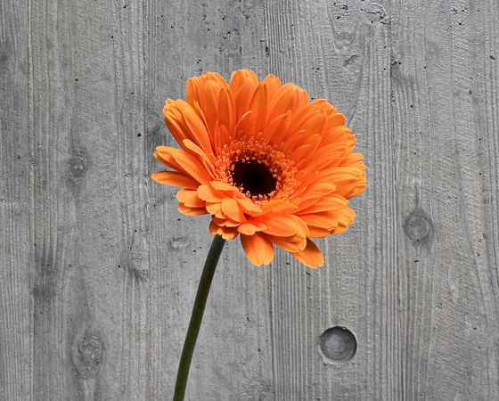フレッシュなオレンジ色の花弁と真っ黒な芯とのコントラストが魅力的となっております。