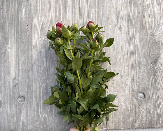 八重咲きの品種で、深紅の花色がゴージャスなシャクヤクとなっております。