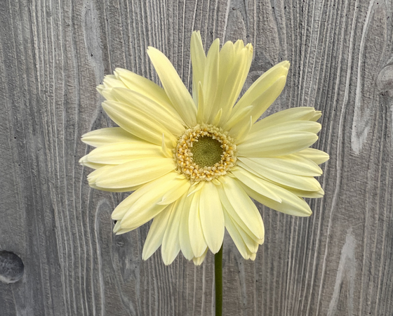 淡い黄色の花色が春らしく優しい印象のガーベラとなっております。