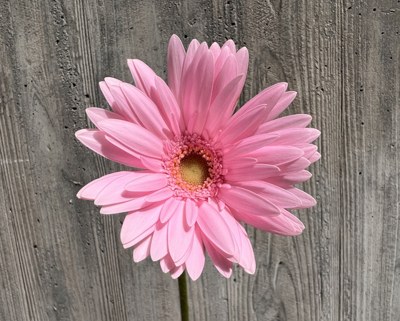 花びらの先は少し尖った形になっており、薄ピンクの花色が可愛らしくも主張のあるガーベラとなっております。